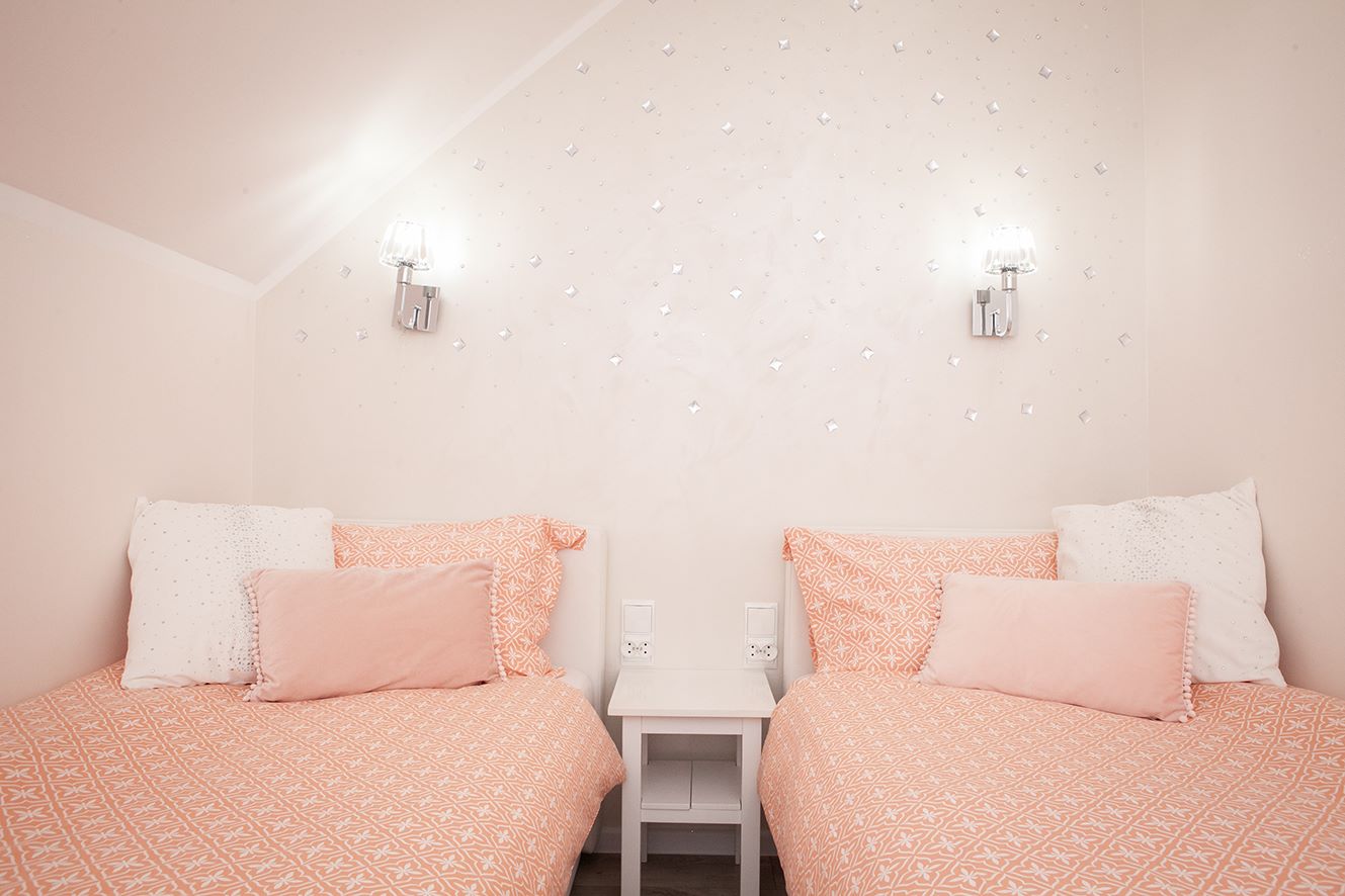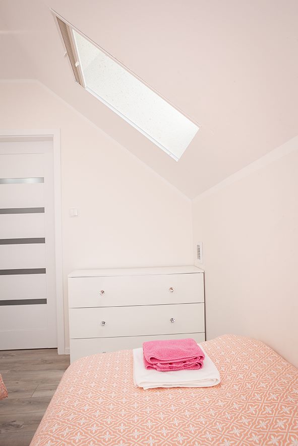 - Łóżka - 1 łoże małżeńskie 160×200, 2 łóżka pojedyncze 90×200 oraz rozkładany narożnik z funkcją spania dla 2 osób
