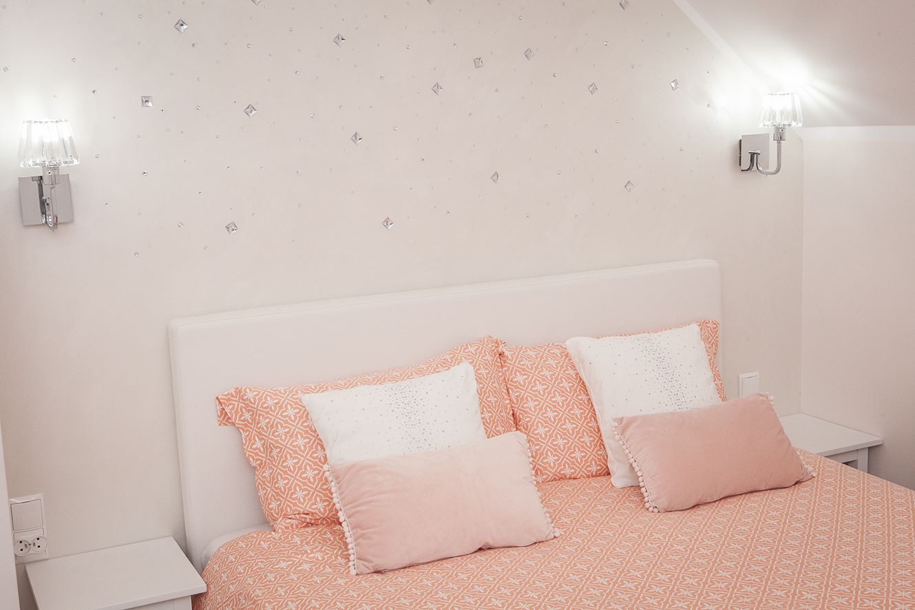 Jasny i delikatny apartament w którym kryształy grają główną rolę. Połyskujące w nich bajkowe refleksy światła dają poczucie elegancji i prestiżu.